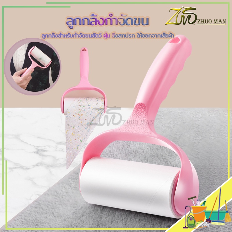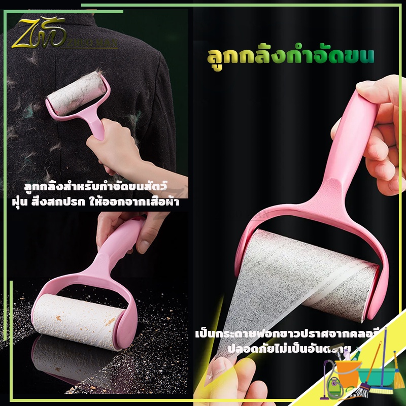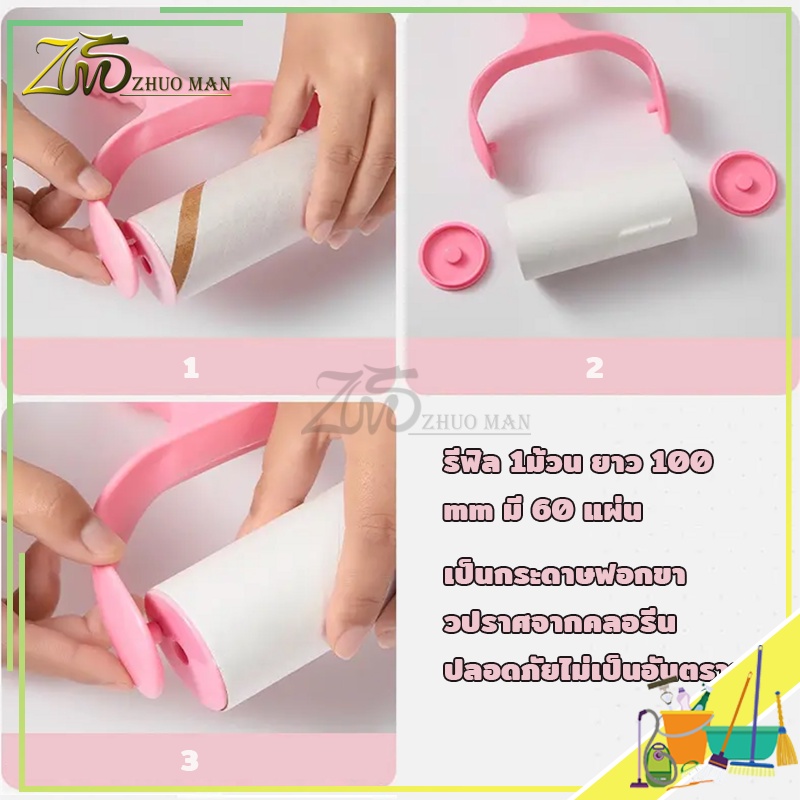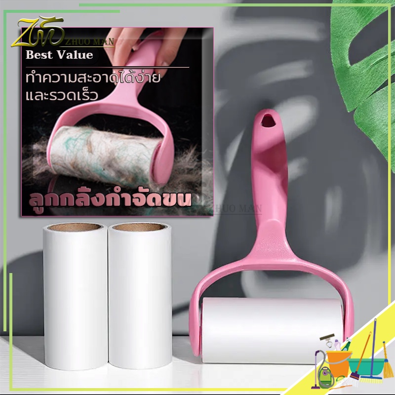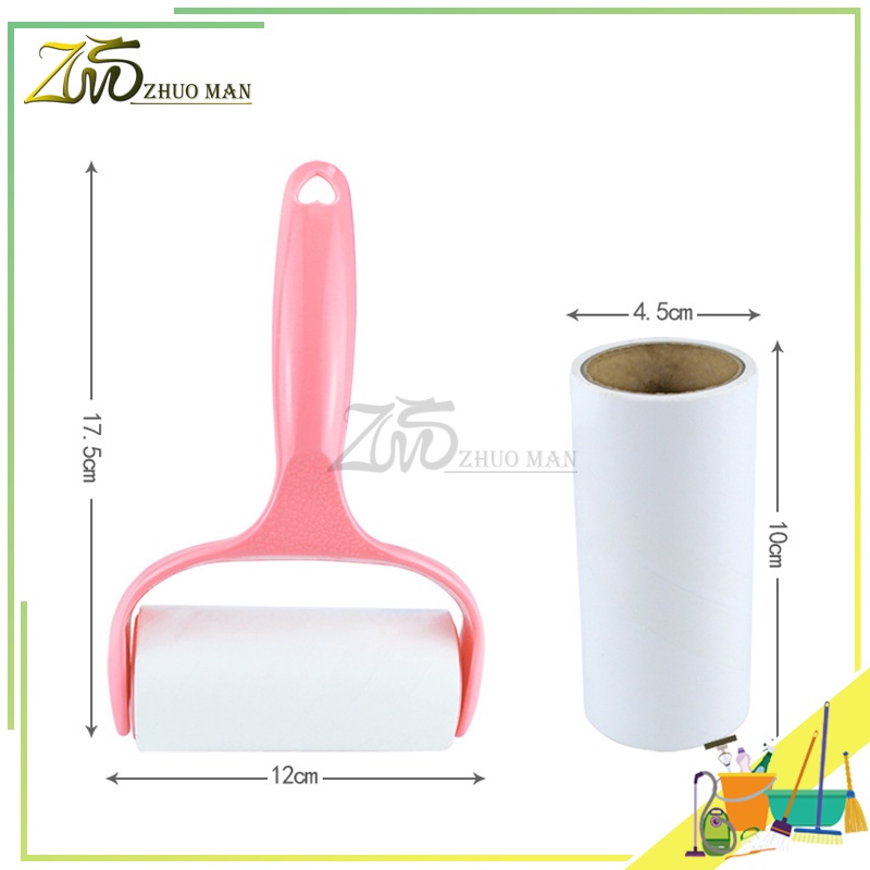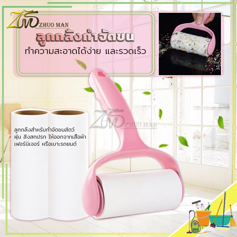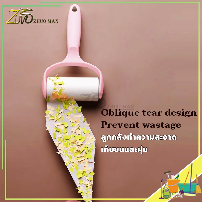 ม้วนกาวรีฟิล ลูกกลิ้งทำความสะอาด ลูกกลิ้งกำจัดขน สีชมพู ลูกกลิ้ง ฉีกกระดาษม้วนกระดาษเพื่อทำความสะอาดเสื้อผ้าผม