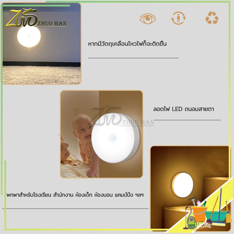 ไฟเซนเซอร์ โคมไฟ LED ไฟไร้สาย แสงนุ่มนวล ไม่แสบตา แสงไม่กระพริบ ชาร์จผ่าน USB ไม่ต้องใช้ถ่าน