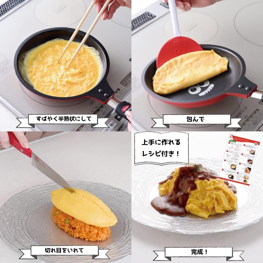 Arnest กระทะ (ใช้ได้กับเตาแก๊สและ IH) / แม่พิมพ์ข้าว / ไม้พาย สีแดง สำหรับข้าวห่อไข่ Nhật Bản