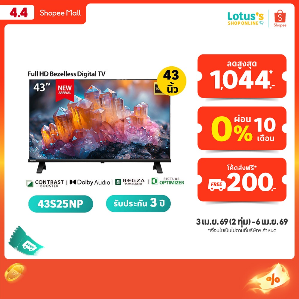 TOSHIBA ทีวี FULL HD 43" รุ่น 43S25NP รับประกันตัวเครื่อง 3 ปี TOSHIBA TV FULL HD 43 IN #43S25NP