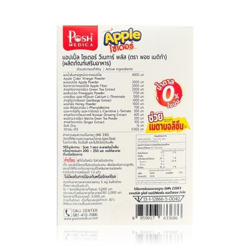 [ยกกล่อง=6ซอง]PoshMedica Appleไซเดอร์ พอช แอปเปิ้ลไซเดอร์วีเนการ์พลัส