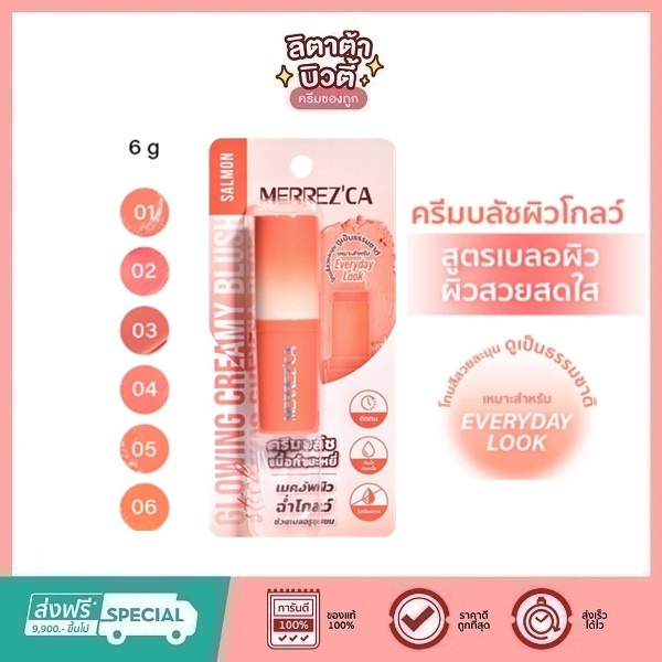 Merrezca Glowing Creamy Blush Stick ครีมบลัชผิวโกลว์ สูตรเบลอผิว (มีให้เลือก 6 สี )