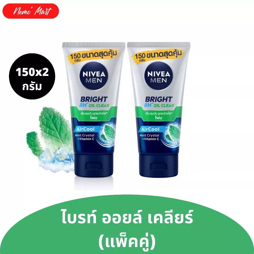 [แพ็คคู่ สุดคุ้ม] NIVEA MEN โฟมล้างหน้า สูตรไบรท์ โฟมเขียว/โฟมขาว ลดจุดด่างดำ ขนาด 150g นีเวียเมน