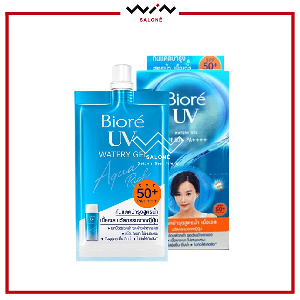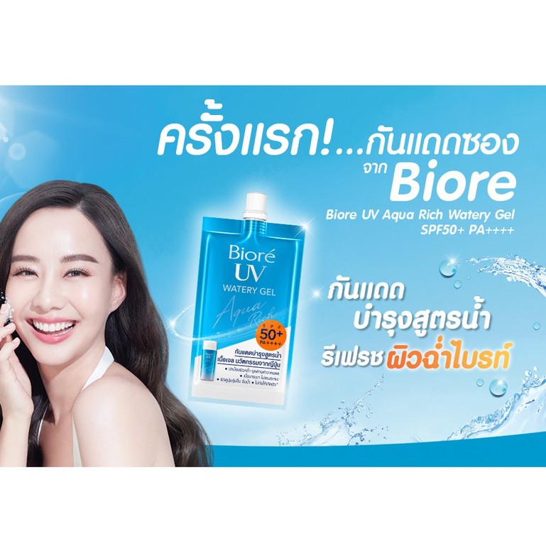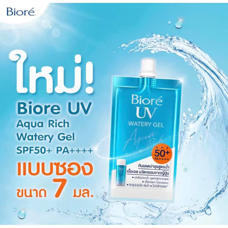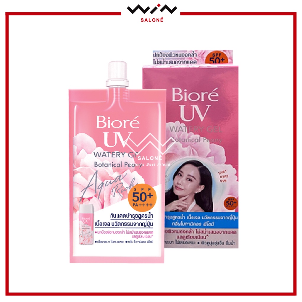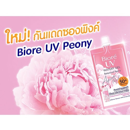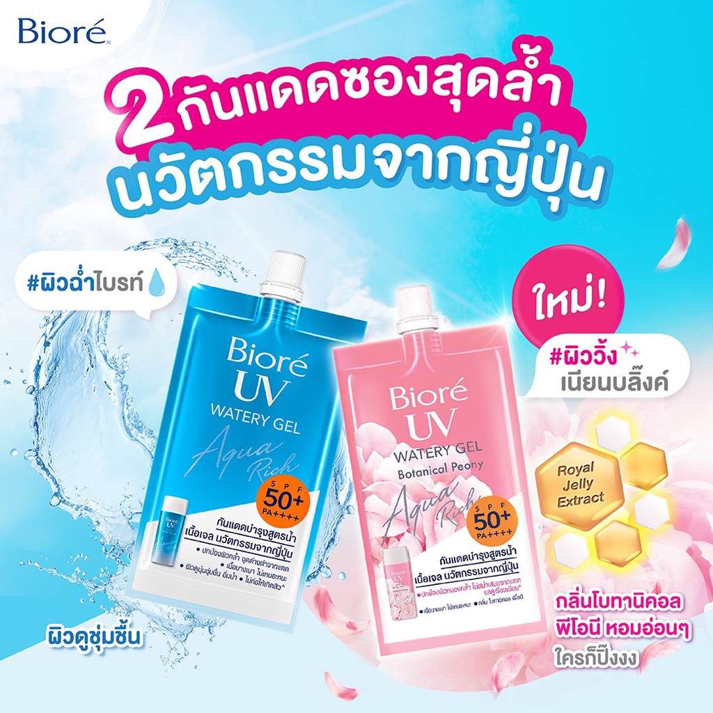 Biore บิโอเร ยูวี อะควา ริช วอเตอร์ เจล/โบทานิคอล พีโอนี SPF 50+/PA++++ 7ml. [ 1 กล่อง x 6 ซอง ] กันแดด