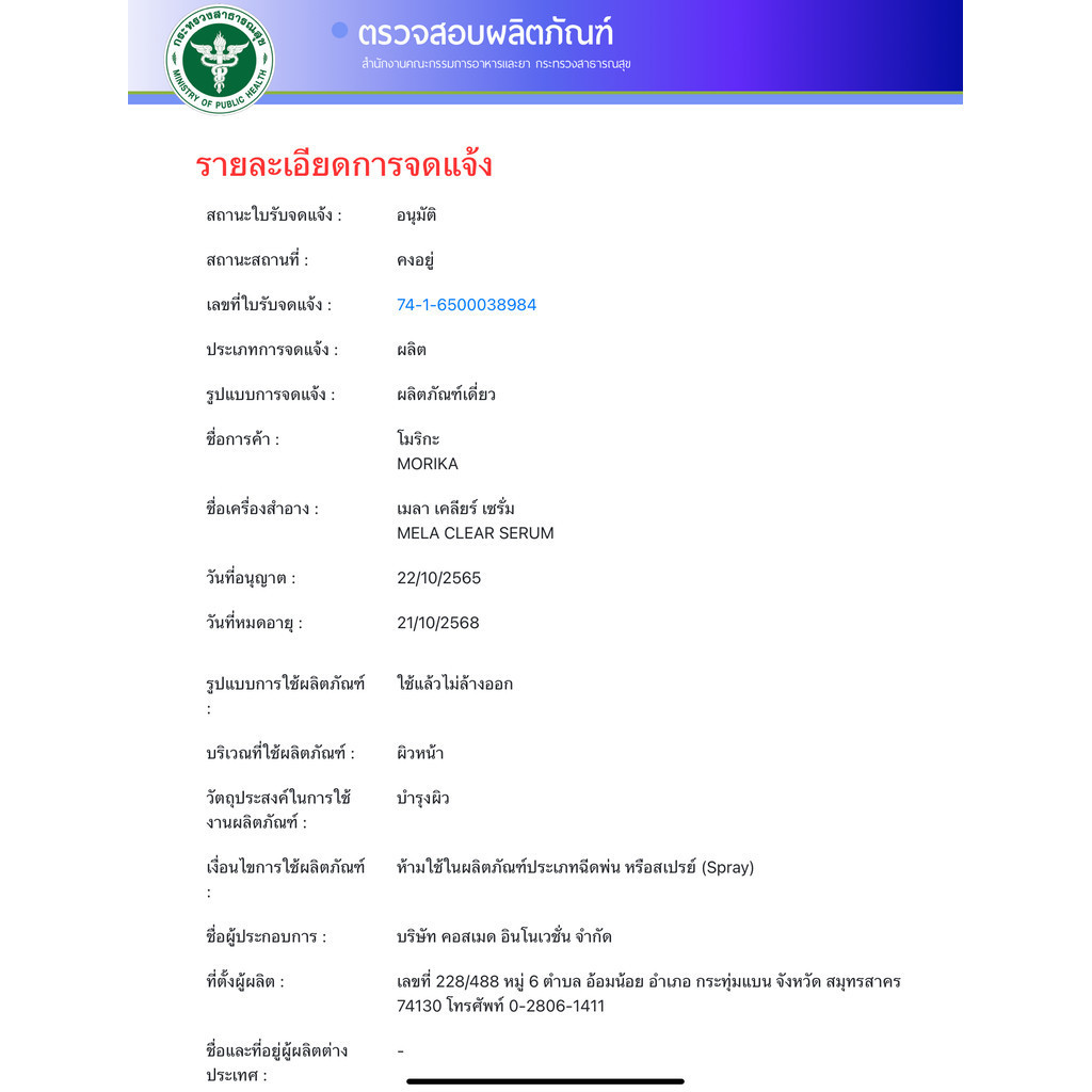 Morika Mela Clear Serum โมริกะ เซรั่ม ฝ้า จุดด่างดำ 18 กรัม