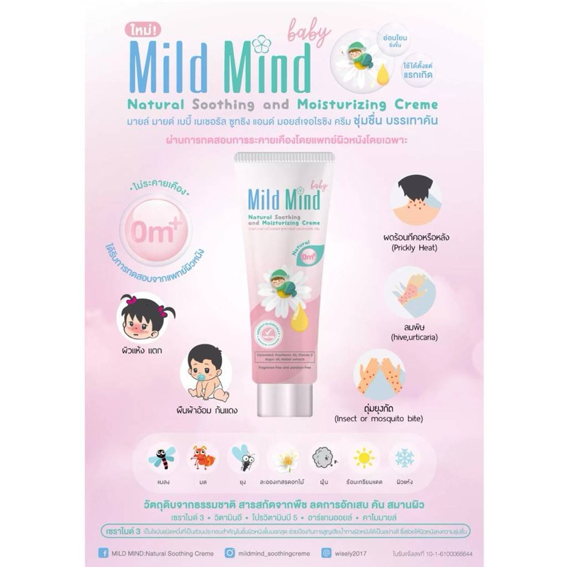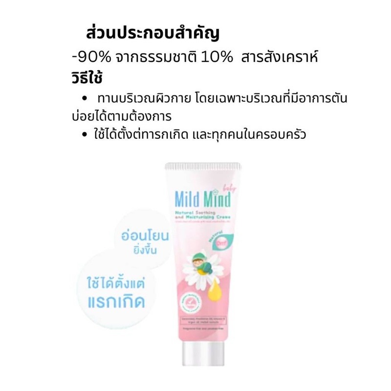ใหม่ล่าสุด (บำรุงผิว แก้แพ้) Mild Mind Baby Natural Soothing And Moisturizing Cream 15g // ครีมบำรุงผิว 15 กรัม