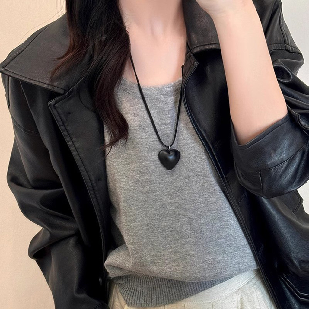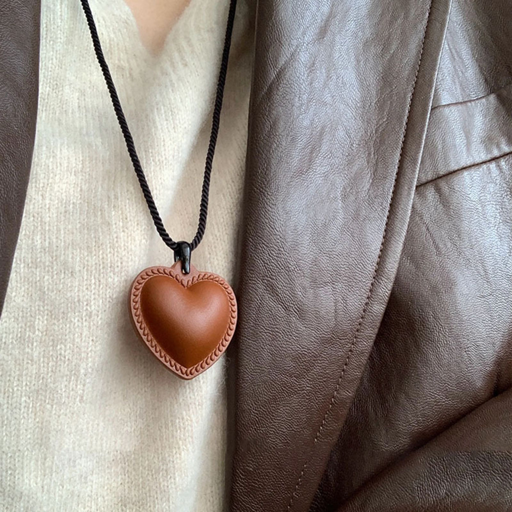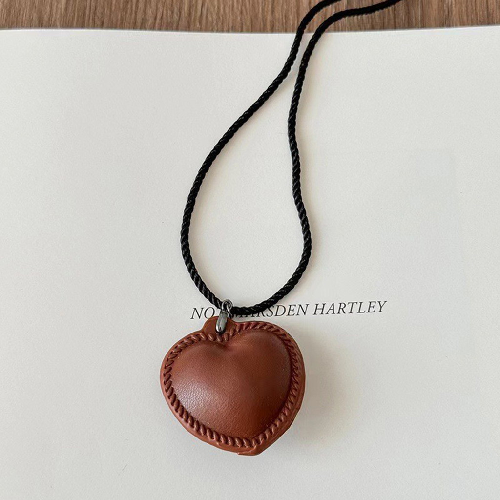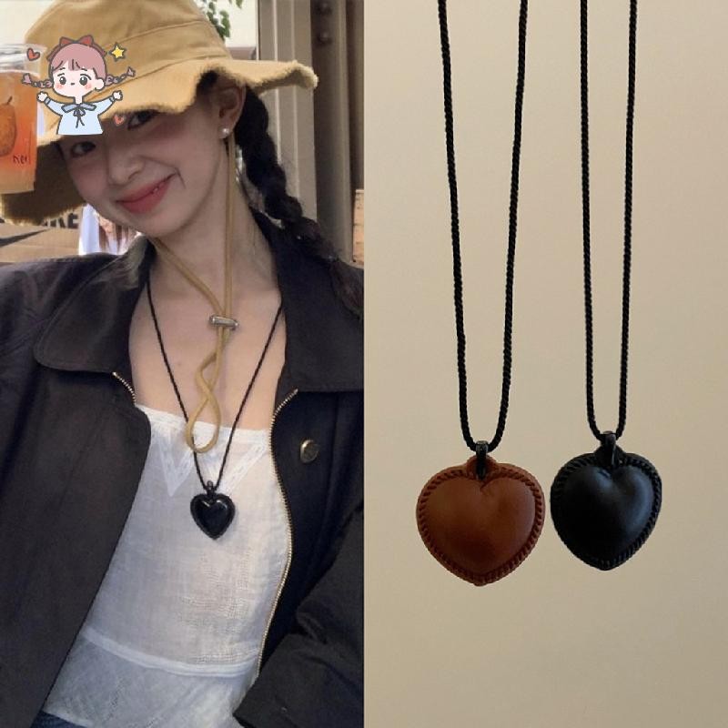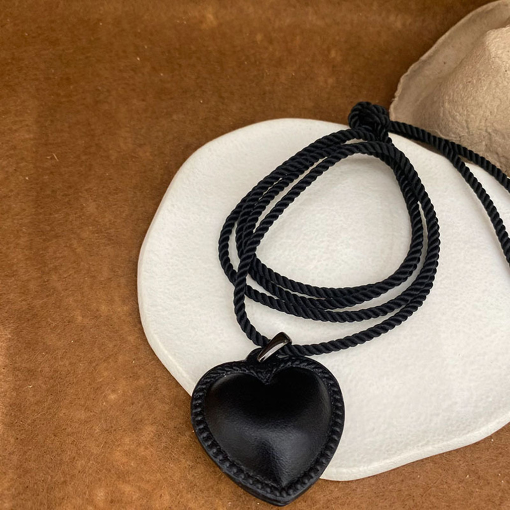 สร้อยคอหนังหัวใจพร้อมจี้โซ่วินเทจ สไตล์แฟชั่นสำหรับผู้หญิง