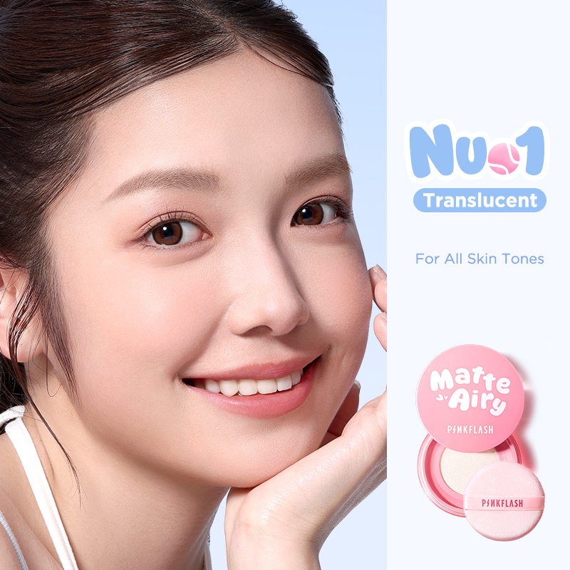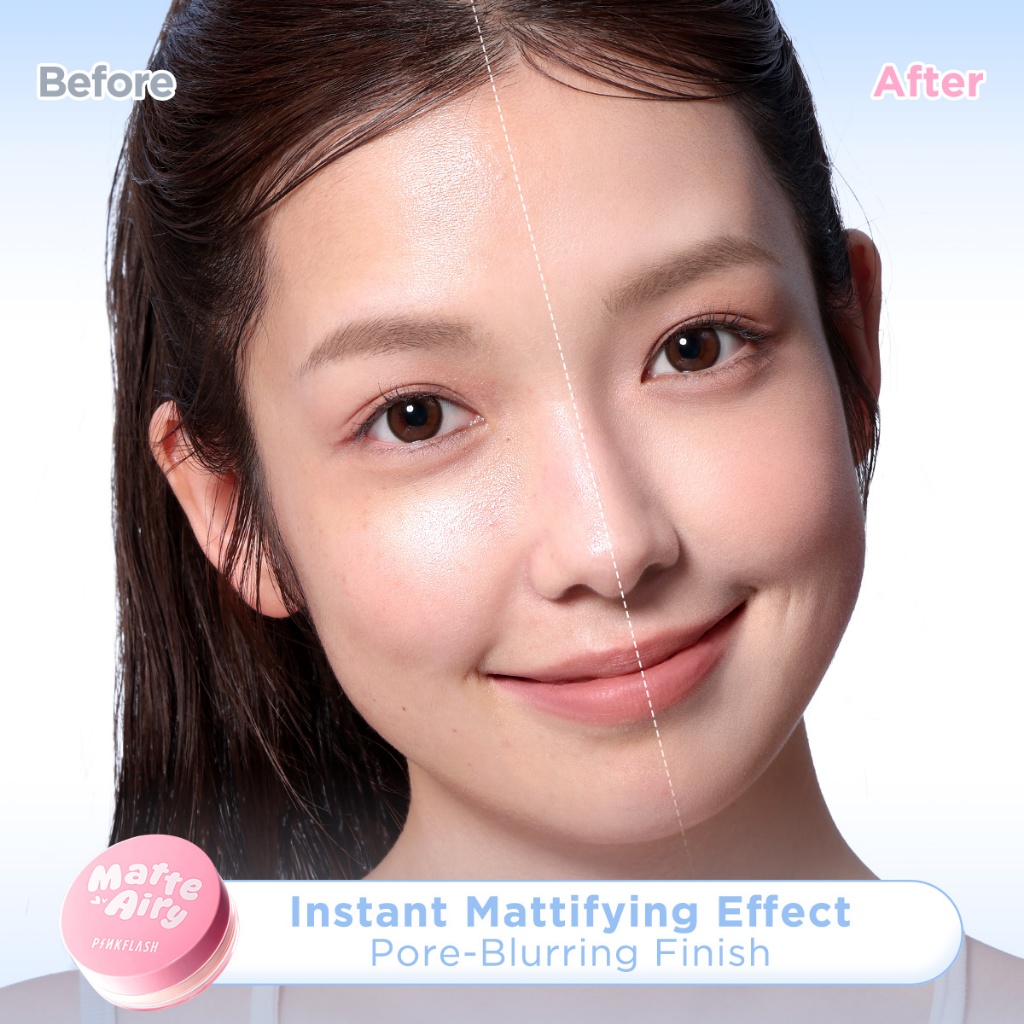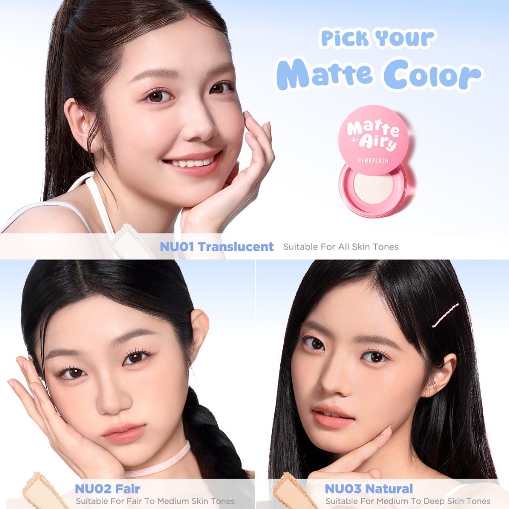 PINKFLASH Airy Matte Acne Proof Loose Powder 16H Oil Control Micro Setting Powder Particles Ultra Pore-Blurring Flashback Proof Sweatproof