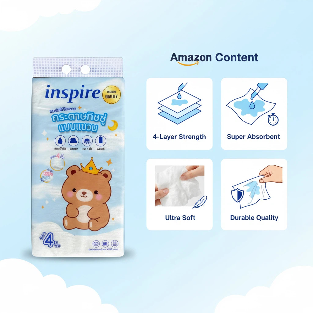 inspire กระดาษทิชชู่ ทิชชู่แ ขวน หนา 3 ชั้น1100แผ่น สัมผัสนุ่มละมุน ไม่เป็นขุย
