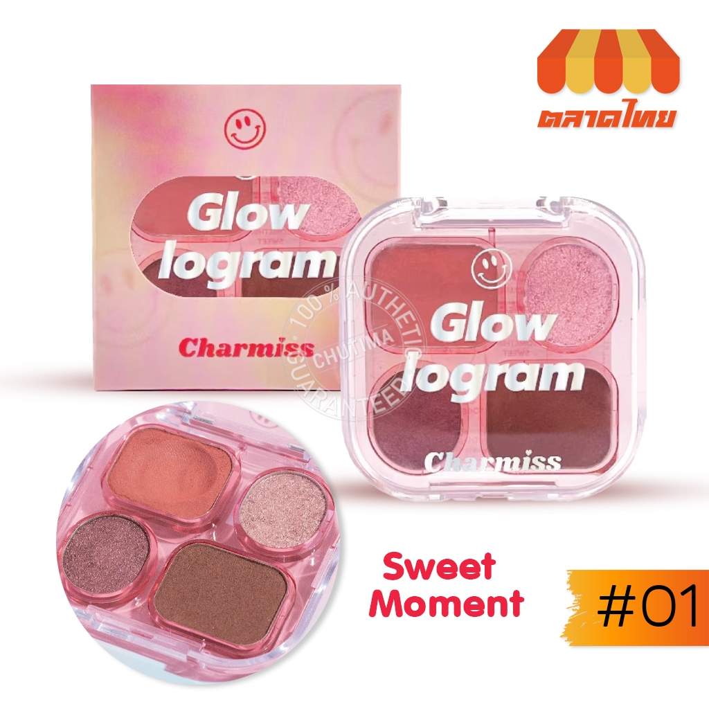 ชาร์มิส อายแชโดว์ พาเลท เนื้อโมจิ แต่งตา กลิตเตอร์ Charmiss Glowlogram Eyeshadow Palette Y2K 4g.