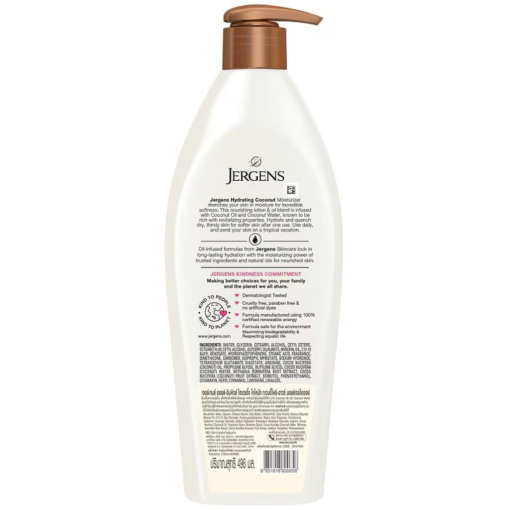 Jergens เจอร์เกนส์ ออยล์-อินฟิวส์ ไฮเดรติ้ง โคโคนัท 24-Hour มอยส์เจอไรเซอร์ 496 มล.