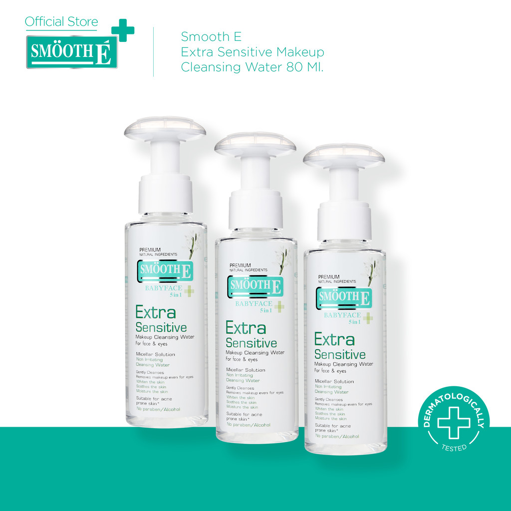 [แพ็ค 3] Smooth E Extra Sensitive Makeup Cleansing Water 80 Ml. สมูทอี คลีนซิ่ง ล้างเครื่องสำอาง สิ่งสกปรก