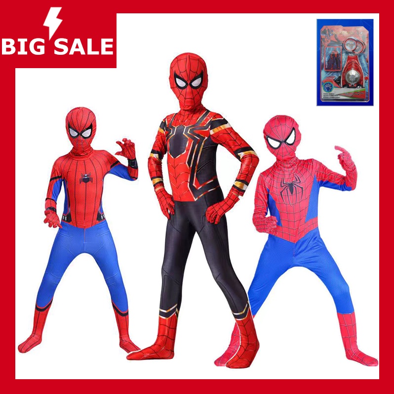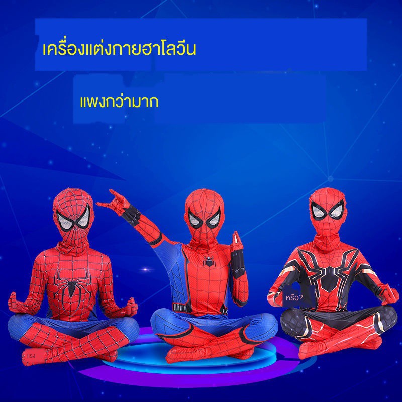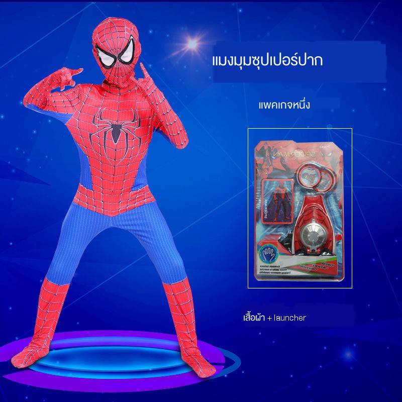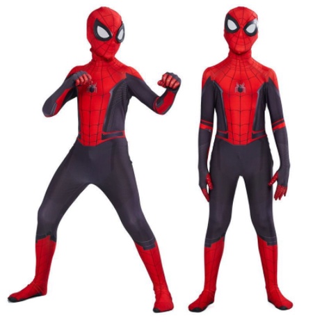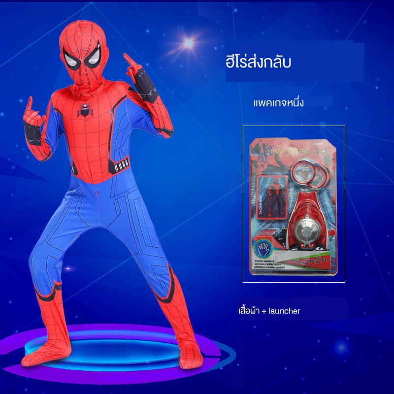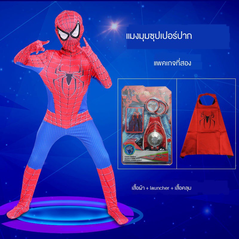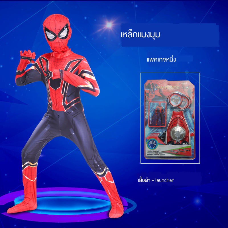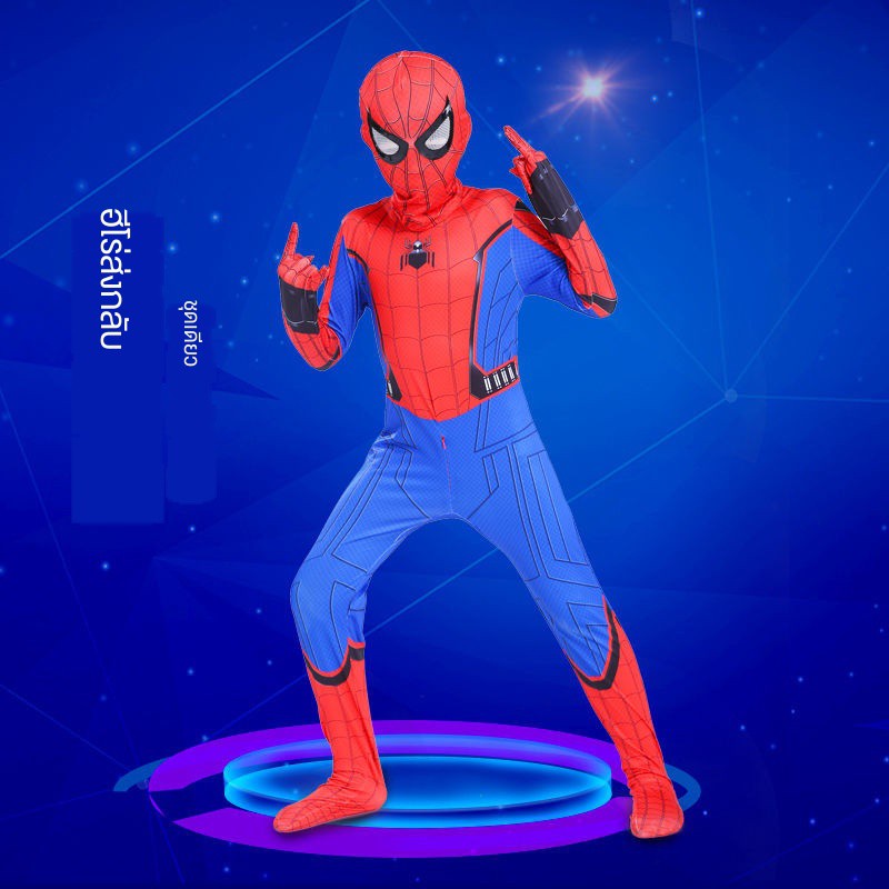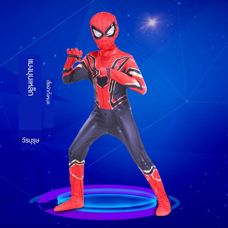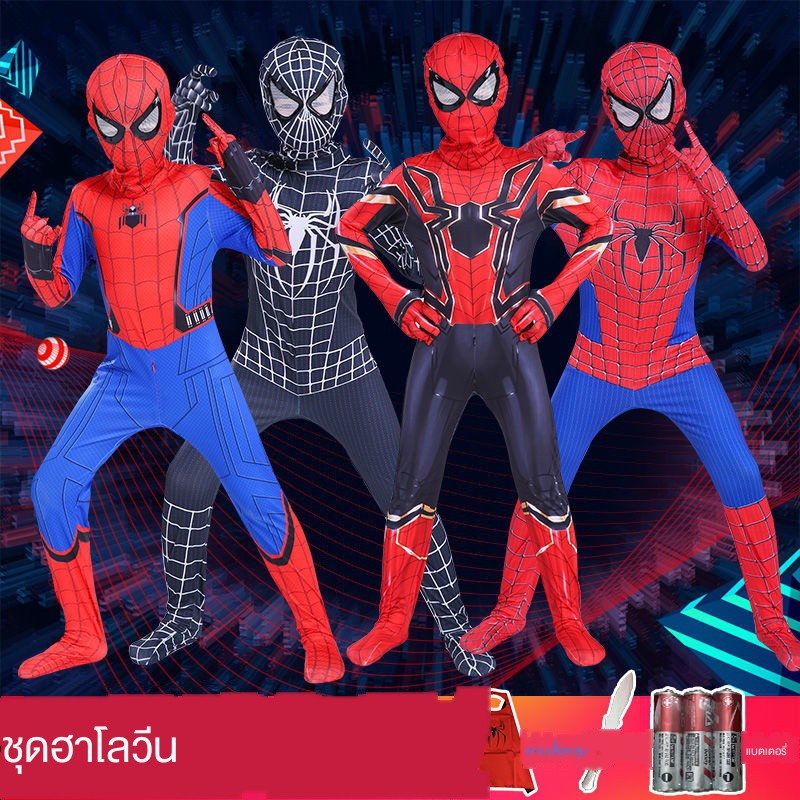 สไปเดอร์แมนรัดรูปเด็กชุดสูทชายฮีโร่ชุดผจญภัยเครื่องแต่งกายชุดสไปเดอร์แมนวิสามัญเสื้อผ้าฮาโลวีนเสื้อโค้ทขนชุดสไปเดอร์แมน
