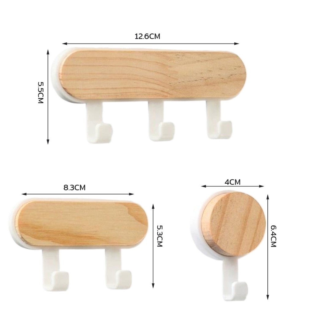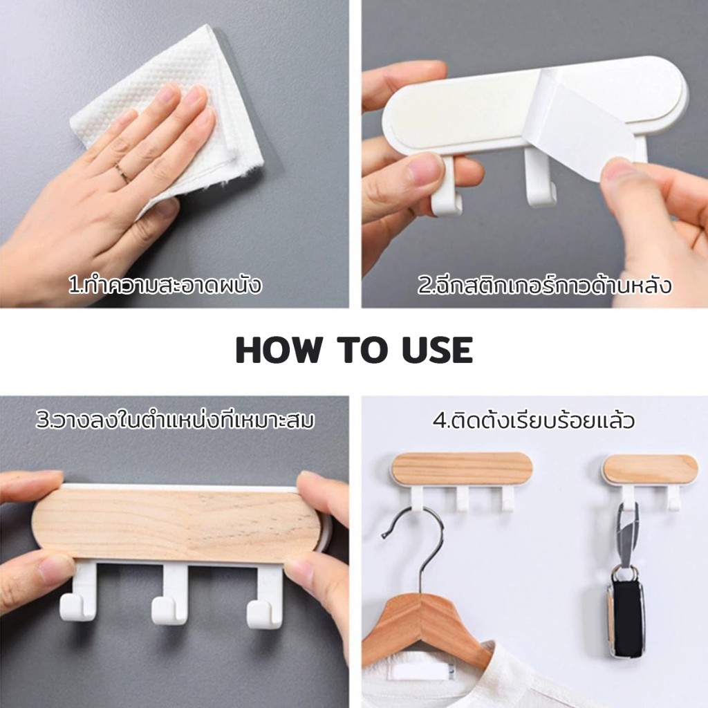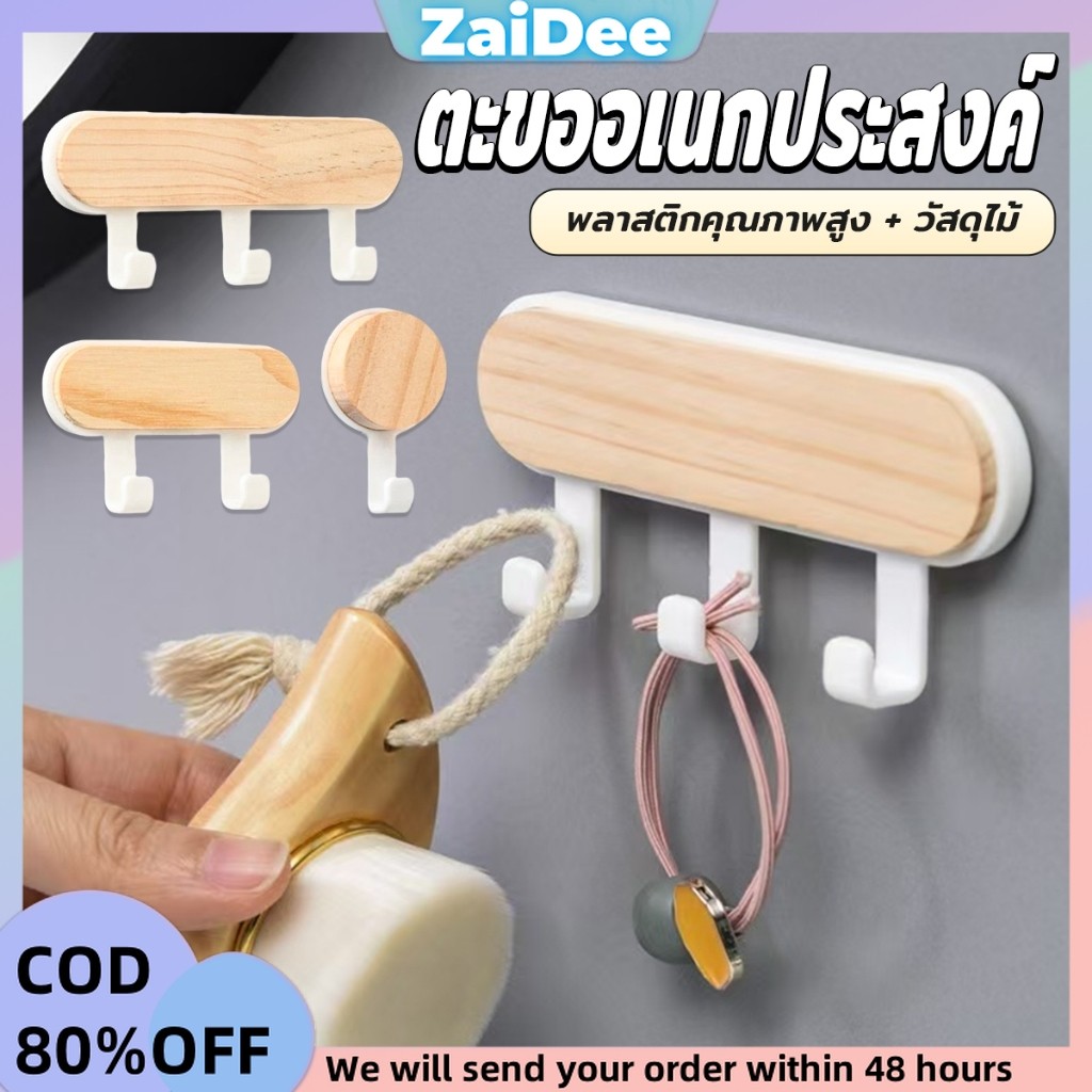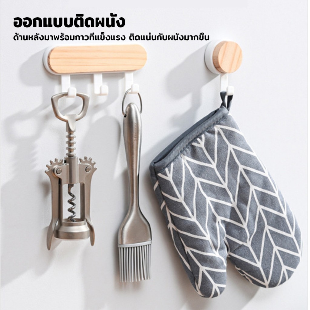 ตะขออเนกประสงค์ แขวน ไม่ต้องเจาะ ทนทาน ตกแต่งด้วนลายไม้ home hook