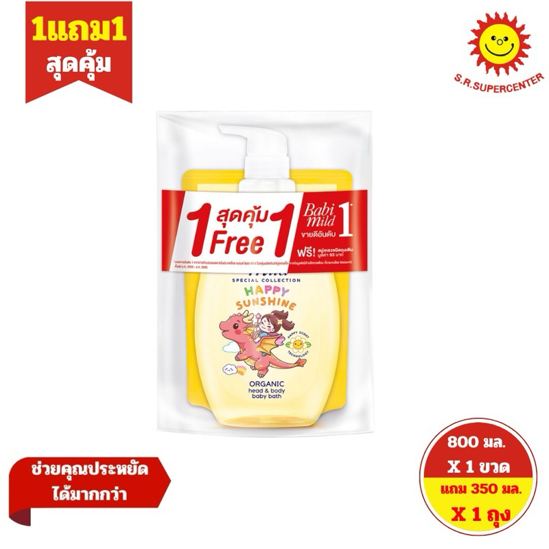 [ 1แถม1 ] Babi mild เบบี้ มายด์ เบบี้บาธ ผลิตภัณฑ์อาบน้ำและสระผม ขนาด 800 มล. แถมฟรี ! ถุงเติม ขนาด 350 มล. คละสูตร
