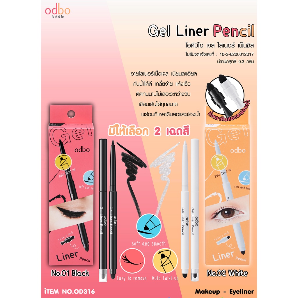 โอดีบีโอ อายไลเนอร์ เนื้อเจล เจลไลเนอร์ ดินสอเขียนขอบตา แบบออโต้ พร้อมกบเหลา 0.3g OD316 odbo Gel Liner Pencil