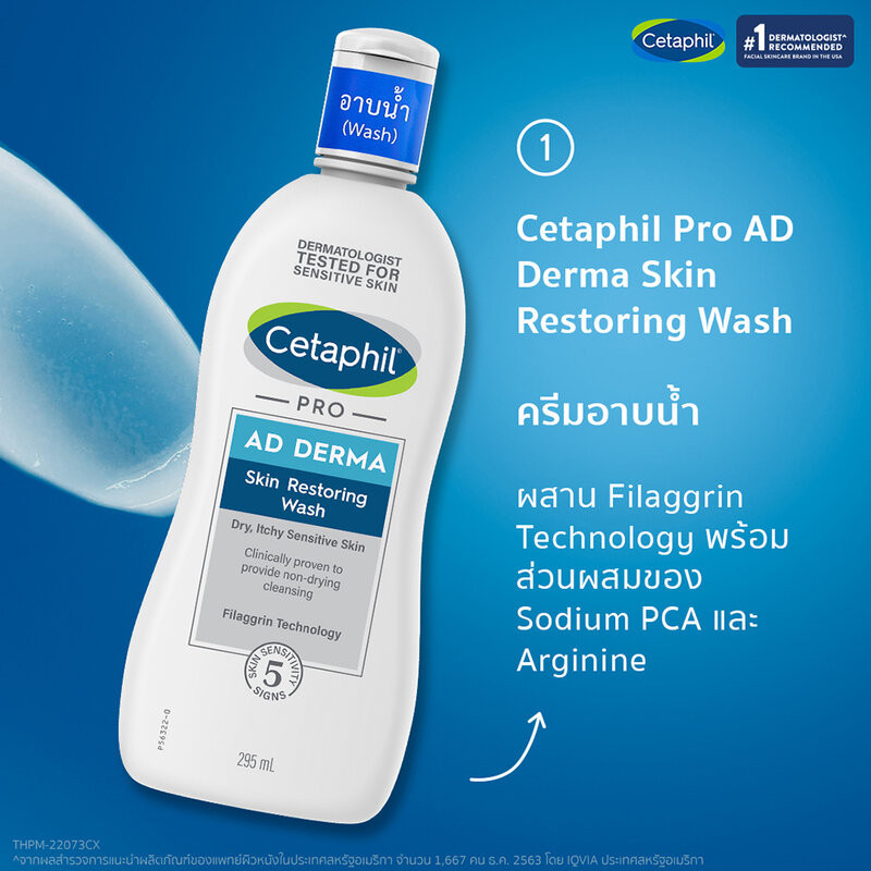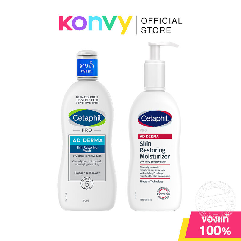 Cetaphil Pro AD Derma เซตาฟิล ผลิตภัณฑ์ดูแลผิวกาย 145ml (Wash/Moisturizer)