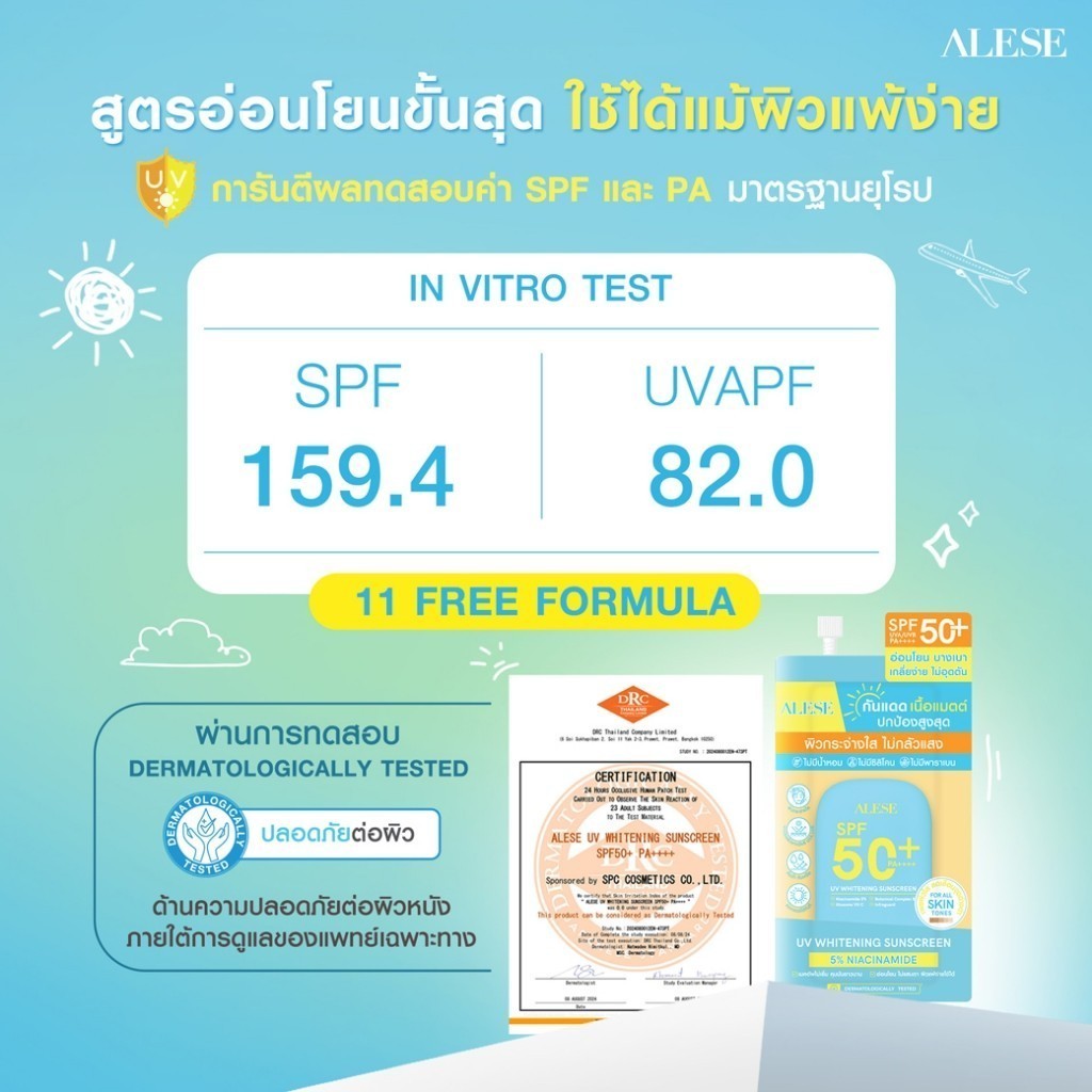 🔥แท้/ดีลสุดคุ้ม/ไลฟ์ทุกวัน🔥(1ซอง) Alese UV whitening sunscreen SPF50+ PA++++ กันแดดแมตต์