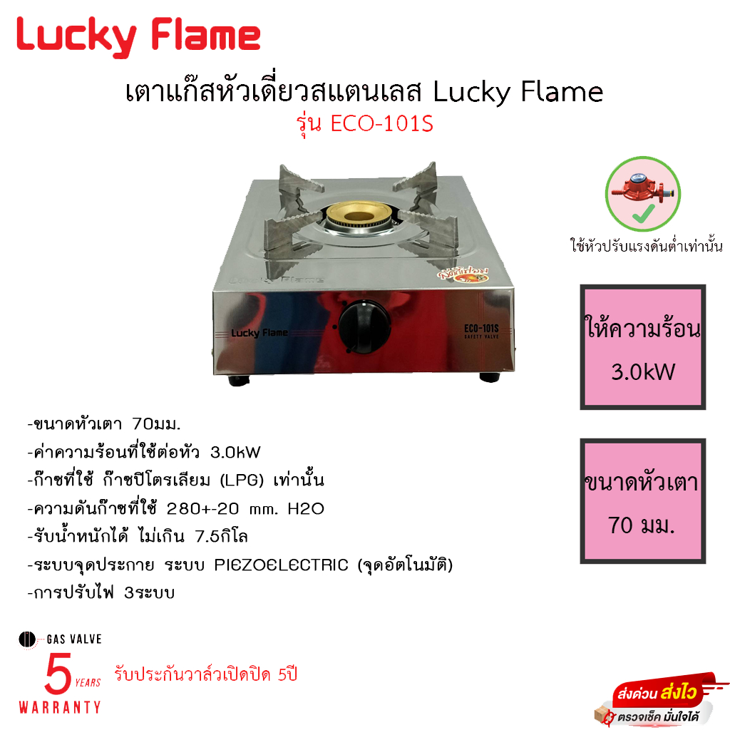 เตาแก๊สหัวเดี่ยวสแตนเลส Lucky Flame รุ่น ECO-101S