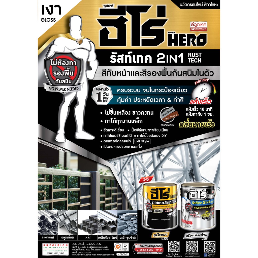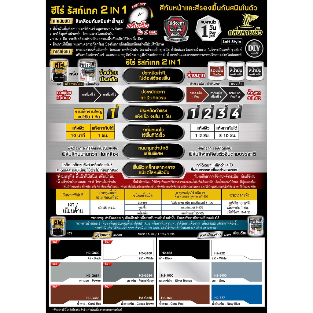 สีรองพื้นกันสนิม ทาเหล็ก ฮีโร่ รัสท์เทค 2 In 1 ชนิดด้าน HERO RUSTTECH 2IN1 Matt woodtect 0.75 ลิตร