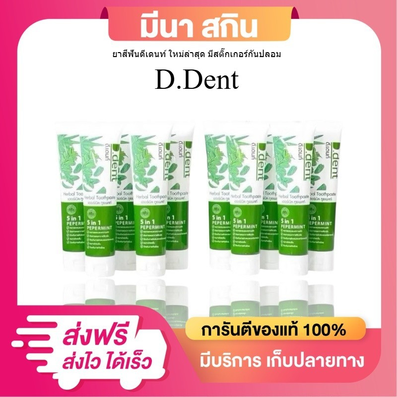 ยาสีฟันดีเดนท์ 5 แถม 5 D.dent หลอดละ 100 กรัม ใหม่ล่าสุด มีสติ๊กเกอร์กันปลอม
