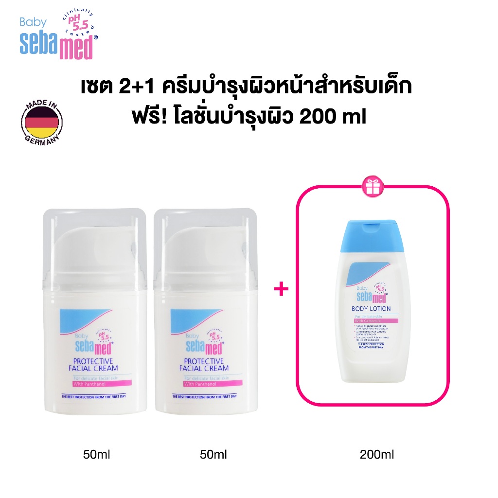 เซ็ต 2+1 : Sebamed Baby Protective Facial Cream 50 ml X2 & Sebemed Baby Lotion 200 ml