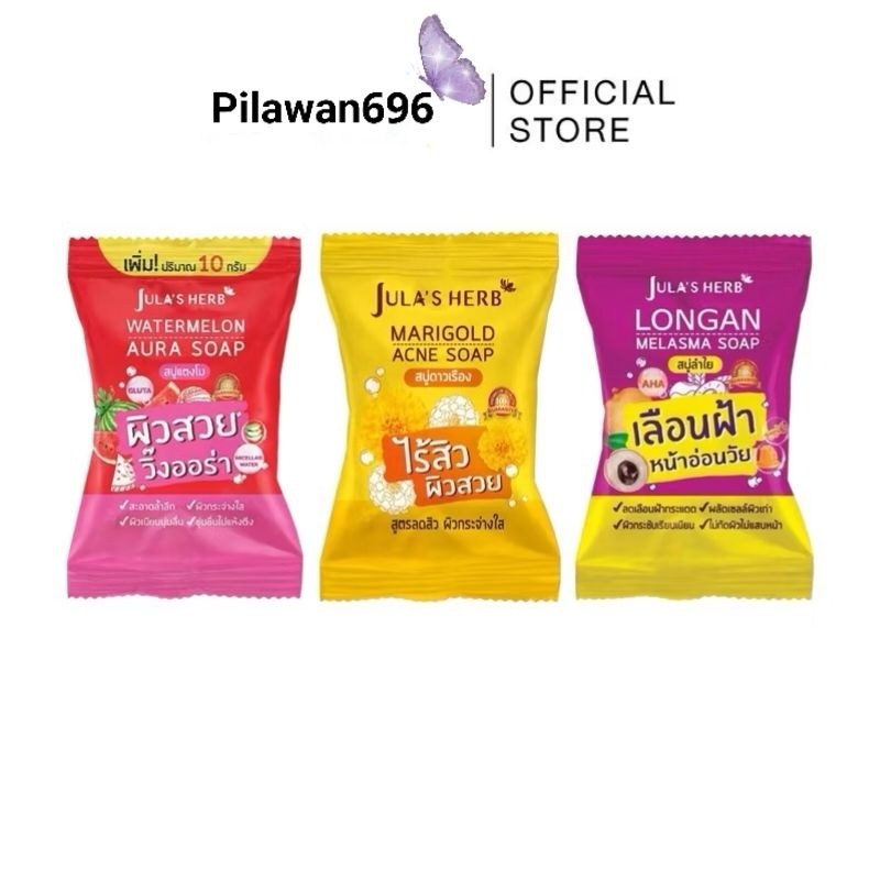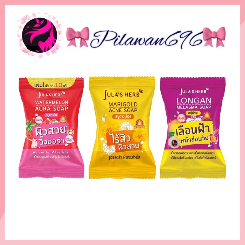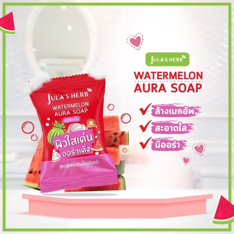 สบู่แตงโม สบู่ลำไย สบู่ดาวเรือง จุฬาเฮิร์บ วอเตอร์เมลอน ออร่า โซฟ Jula’s Herb Watermelon Aura Soap
