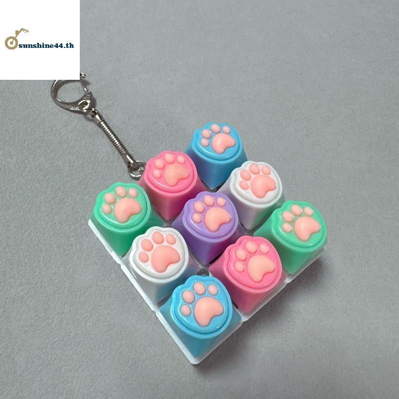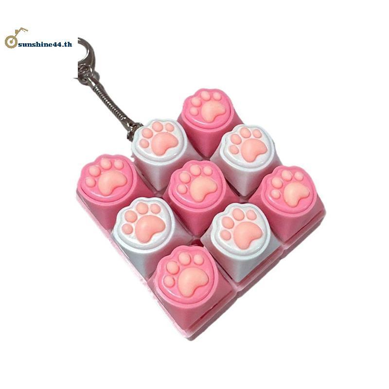 FOURSUN 9 คีย์คีย์บอร์ดเงียบพวงกุญแจ Creative Paw ปุ่ม Keycap ความเครียดบรรเทาของเล่นของเล่นเด็กผู้ใหญ่ของขวัญ TH