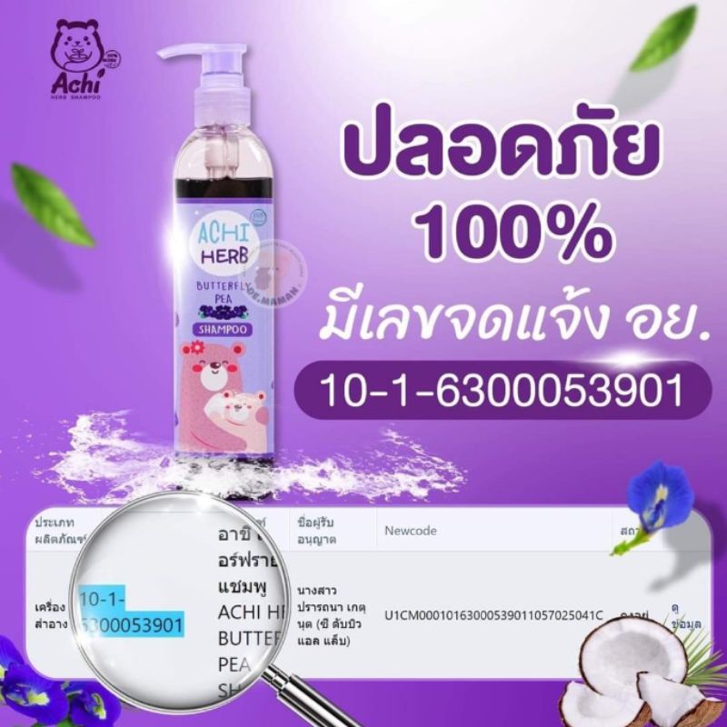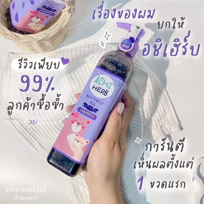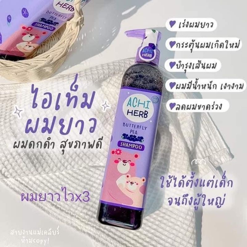 Achi Herb shampoo อชิเฮิร์บ แชมพูสมุนไพรอัญชัน เร่งผมยาว บำรุงผมให้ดกดำ