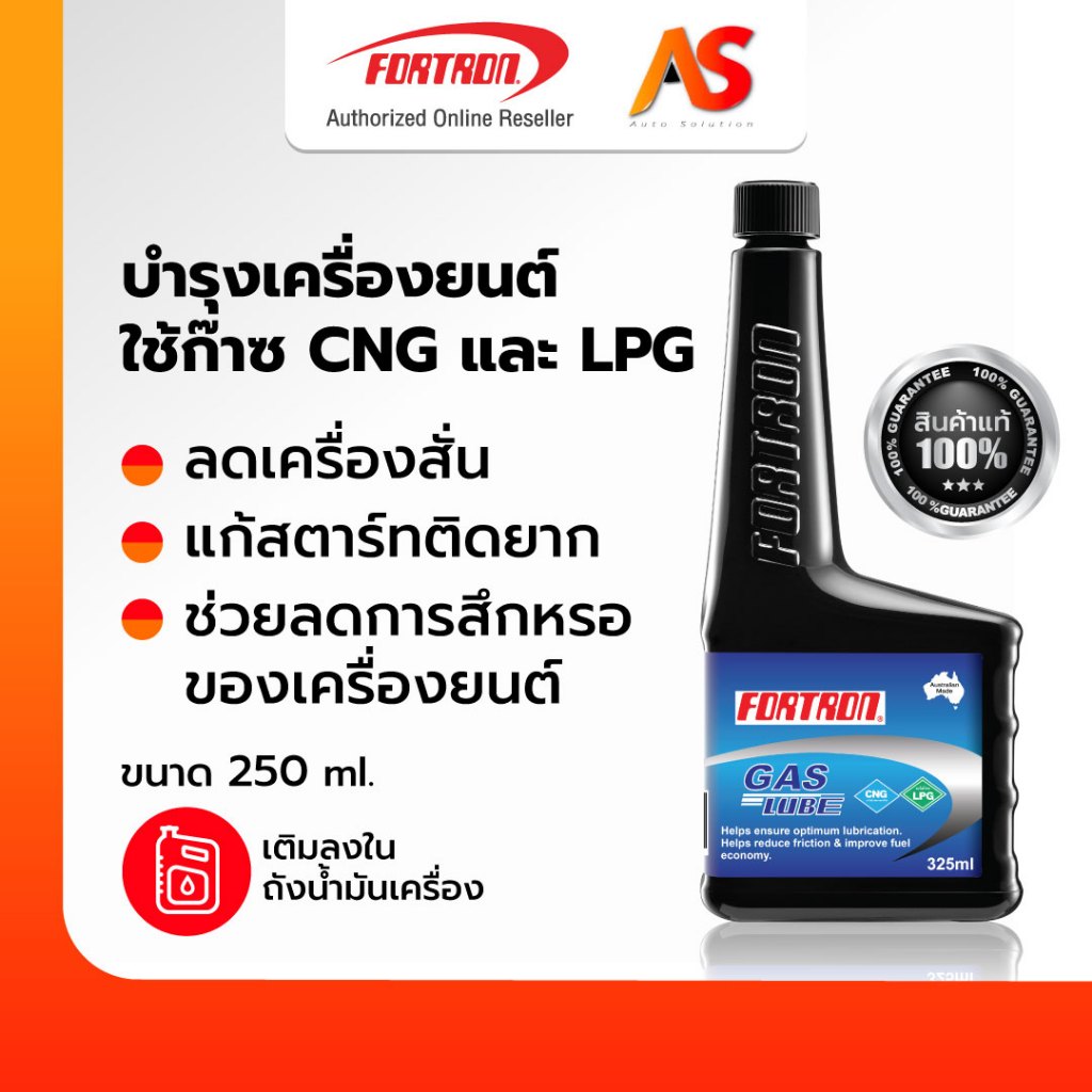 [ของแท้ส่งตรง] Fortron Gas Lube โฟรตรอน สารเพิ่มความทนทานน้ำมันเครื่อง ลดเครื่องสั่น กระตุก สำหรับรถใช้ก๊าซ CNG, LPG
