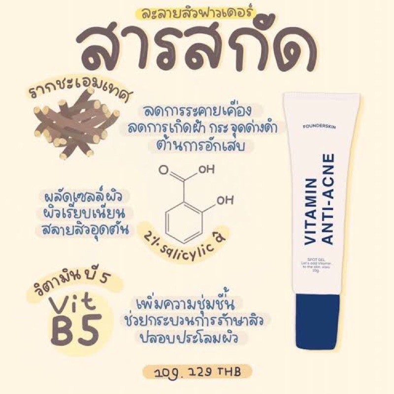 Founderskin VITAMIN AN-TI ACNE ฟาวเดอร์สกิน เจลละลายสิว 10 g.