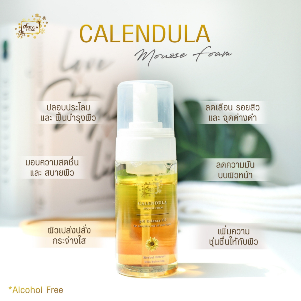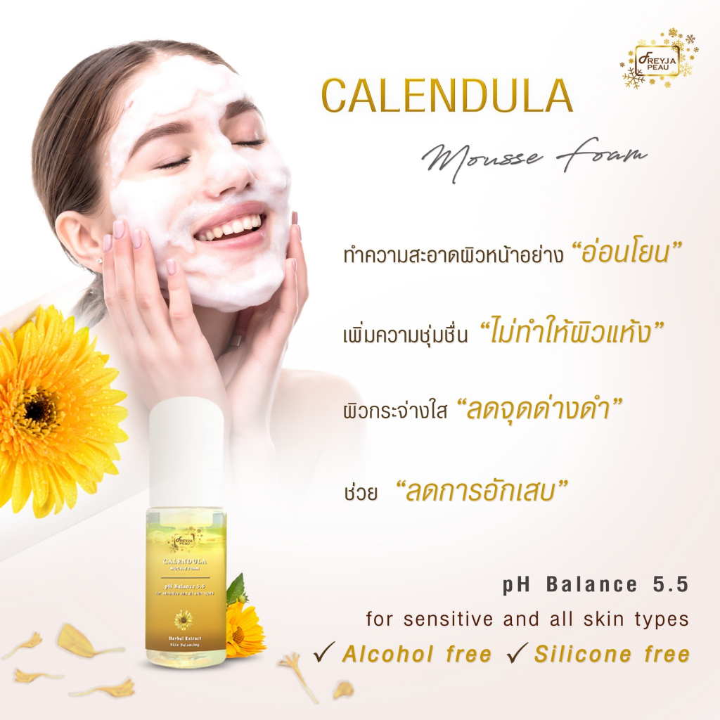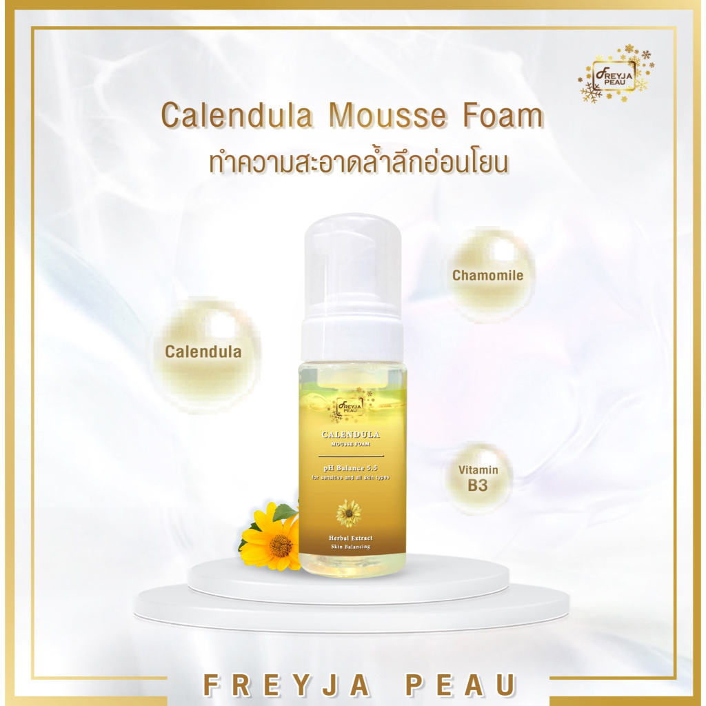 Freyja Calendula Mousse Foam โฟมล้างหน้าดอกคาเลนดูล่า ลดผิวอักเสบ ลดสิวอุดตัน ต้านอนุมูลอิสระ อ่อนโยนต่อผิวแพ้ง่าย