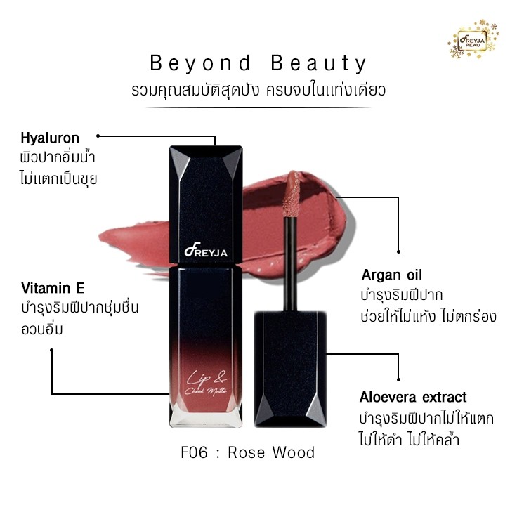 Freyja Matte Lipstick แมทลิปสติก สีสวยสดชัดติดทน กลบสีปากมิด ไม่ตกร่องระหว่างวัน เม็ดสีจากประเทศฝรั่งเศส