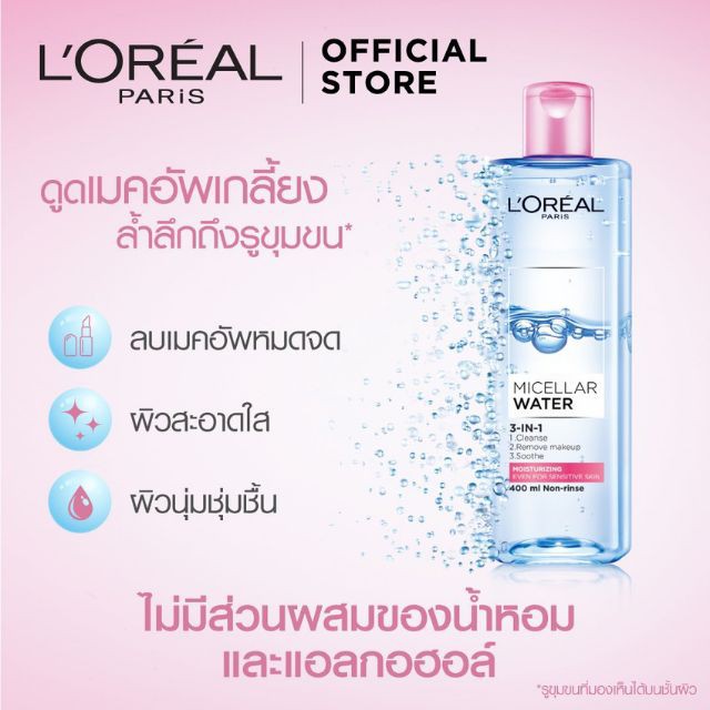 ลอรีอัล ไมเซล่า วอเตอร์ ทรีอินวัน 400 มิลลิลิตร (Moisturizing สีชมพู)