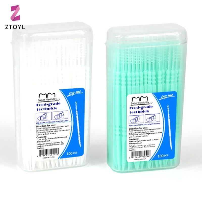 Null 100 ชิ้น/กล่อง Double Head ไหมขัดฟัน Inter Toothpi แปรงแปรงฟัน Sti ทันตกรรม Oral Care Toothpis ไหมขัดฟัน Pi null