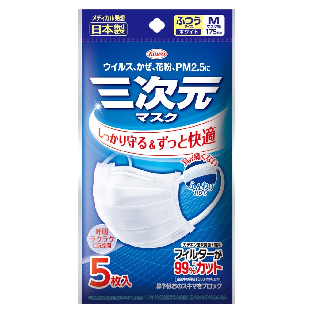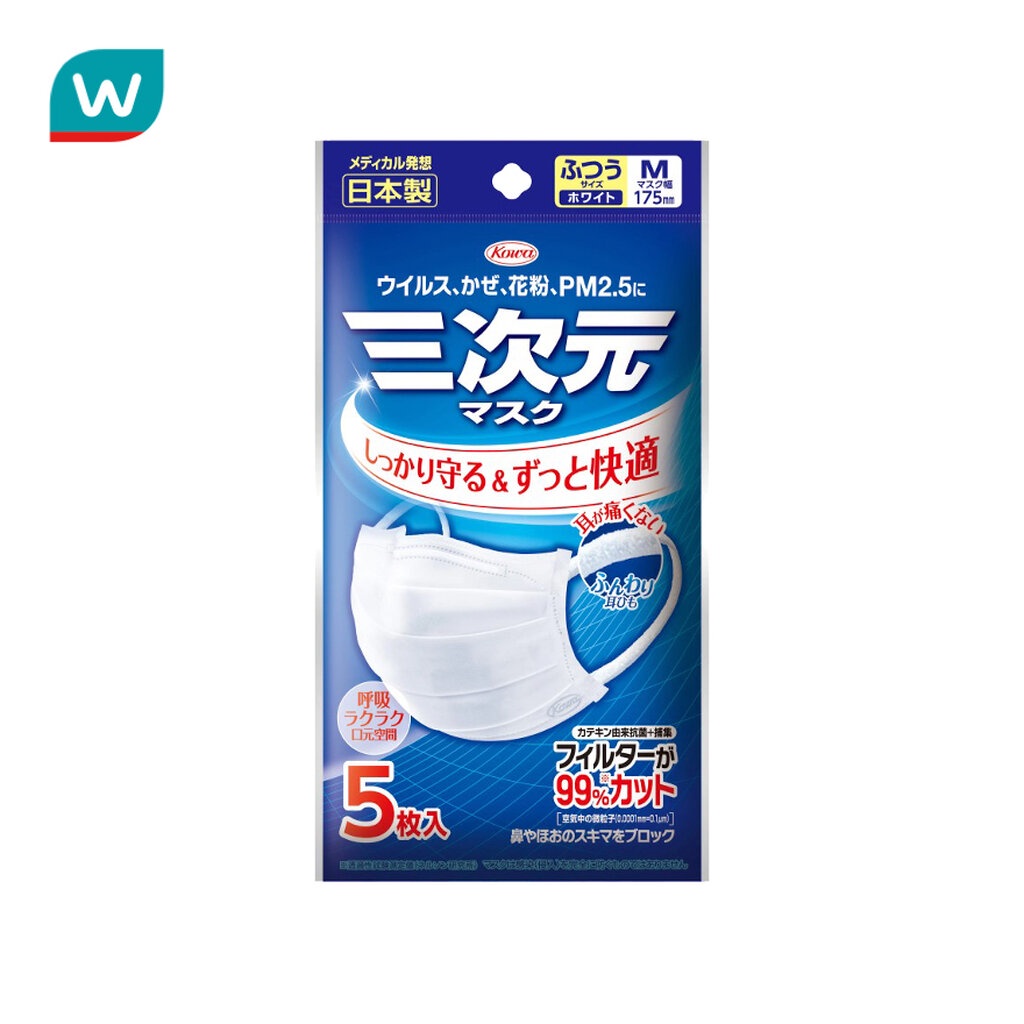 Kowa โควา หน้ากากอนามัย 3 มิติ ซีทีพี Size M สีขาว (5ชิ้น/แพ็ค)