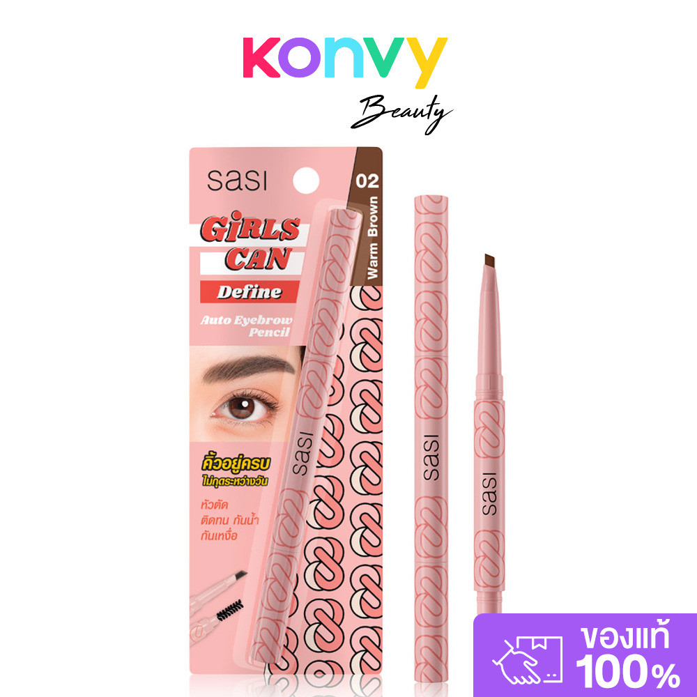 SASI Girls Can Auto Eyebrow Pencil 0.3g #02 Warm Brown ศศิ ดินสอเขียนคิ้วหัวตัดสามเหลี่ยม.