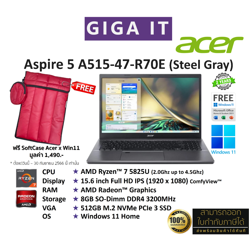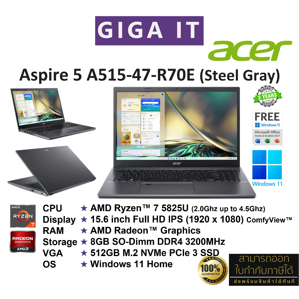 Acer Aspire 5 A515-47-R70E (15.6" FHD,R7-5825U, 8GB, 512GB M.2, Win11 + Office) Steel Gray ประกันศูนย์ 2 ปี