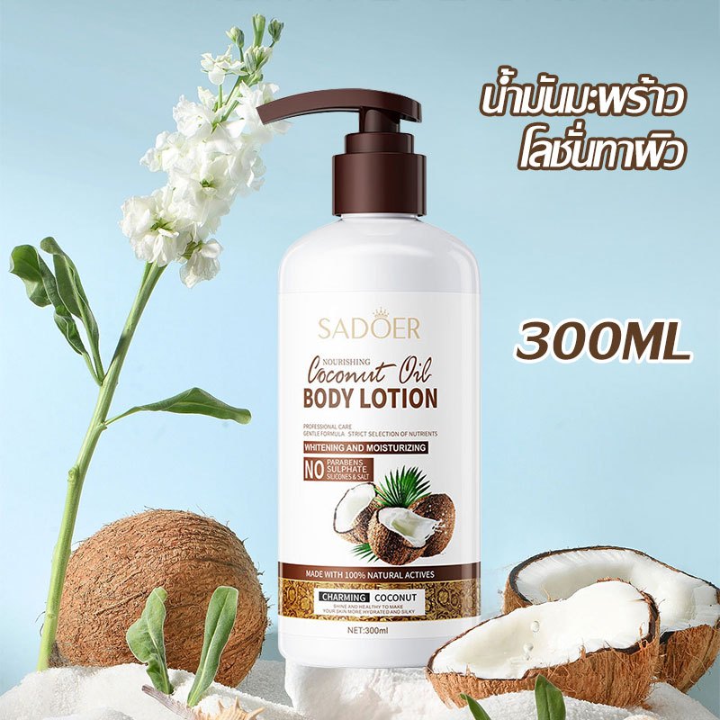 โลชั่นบำรุงผิวตัว สูตรน้ำมันมะพร้าว ผิวเนียนนุ่ม สูตรให้ผิวขาว เนียนใส Sadoer Coconut Oil Body Lotion Peach 300ml.-050