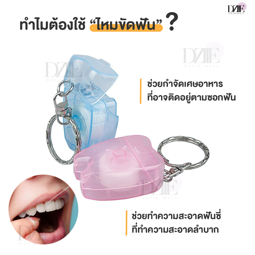 Hellosmile Floss Keychain Teeth Shape พวงกุญแจไหมขัดฟัน ไหมขัดฟัน พกพา ทำความสะอาด พวงกุญแจ กลิ่นมิ้นต์ 1ชิ้น