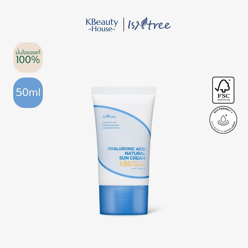 [ซันครีมโทนอัพ] ISNTREE Hyaluronic Acid Natural Sun Cream SPF50+ PA++++ 50 ml./1.69 fl.oz.