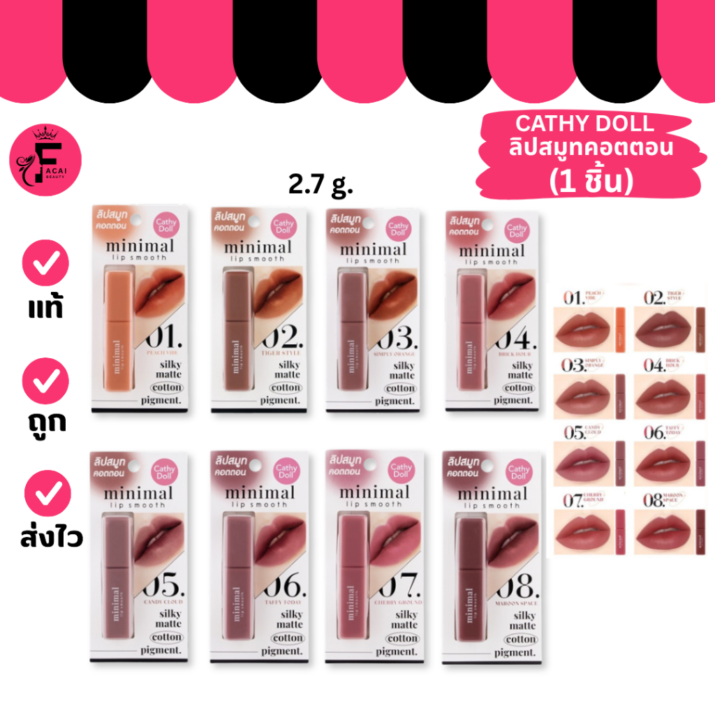 (1 แท่ง) Cathy Doll มินิมอลลิปสมูท ลิปสติกเนื้อคอตตอน มี 8 เฉดสี (ปริมาณ 2.7 กรัม)
