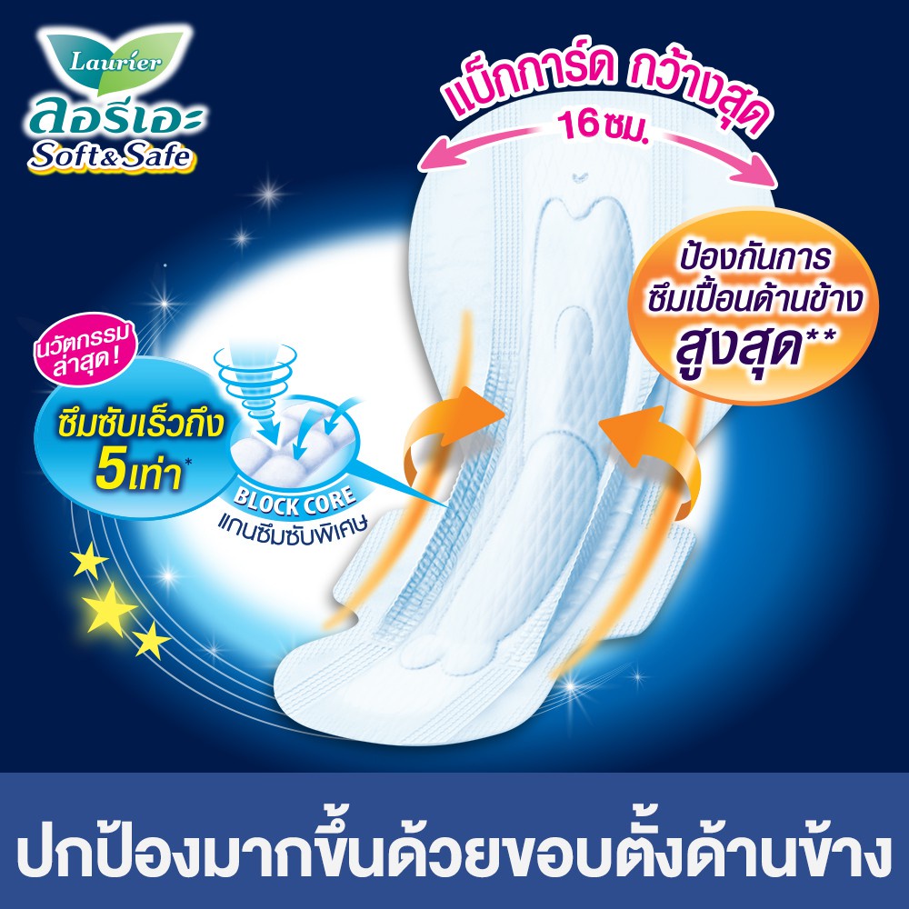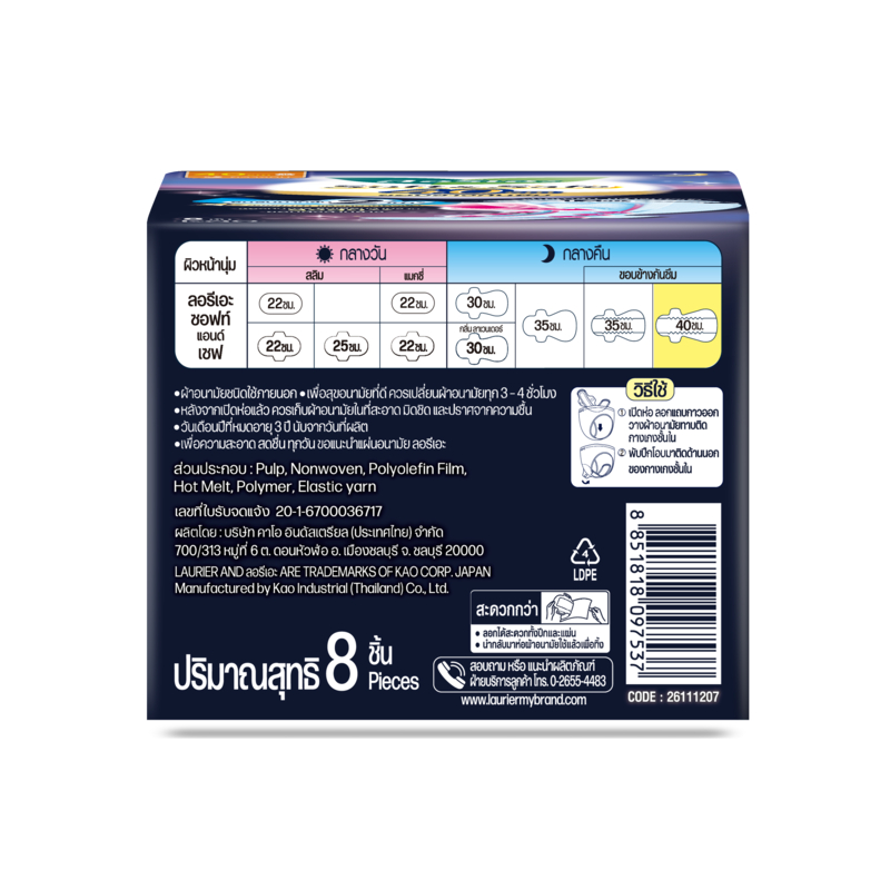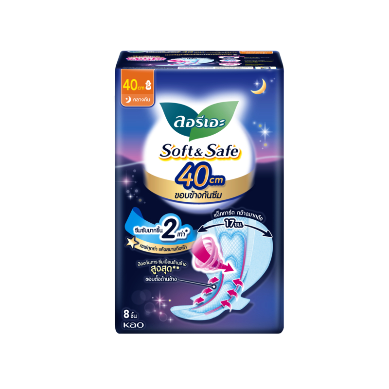 [แพ็ค3] ลอรีเอะ ซอฟท์แอนด์เซฟเอ็กซ์ตร้าโพรเทคชั่นกลางคืน40ซม8ชิ้น LaurierSoft&Safe Extraprotection ผ้าอนามัย,ยกแพ็ค