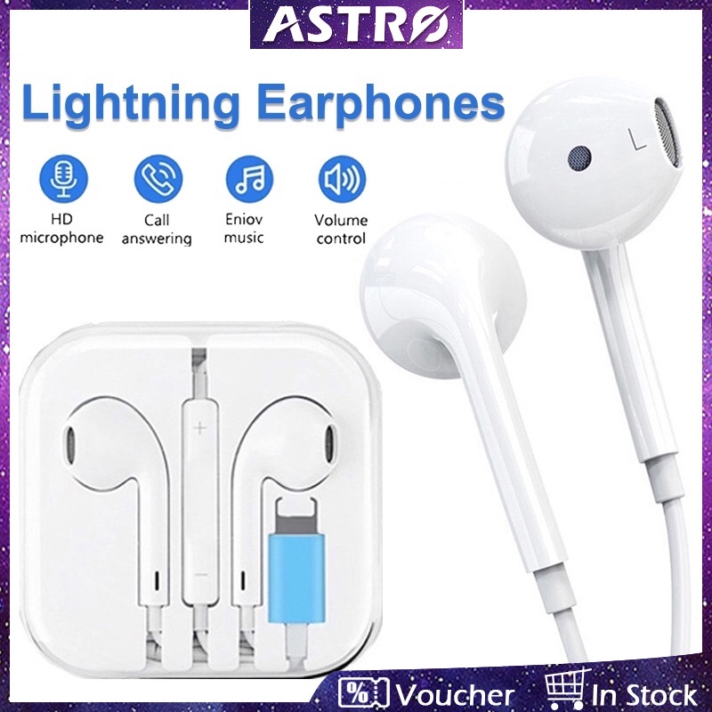 หูฟังอินเอียร์ แบบมีสาย Astro Lightning Type C 3.5 มม. พร้อมไมโครโฟน และตัวควบคุมระดับเสียง ตัดเสียงรบกวน เบสสเตอริโอ สําหรับ iPhone iPad Air HUAWEI Xiaomi Samsung