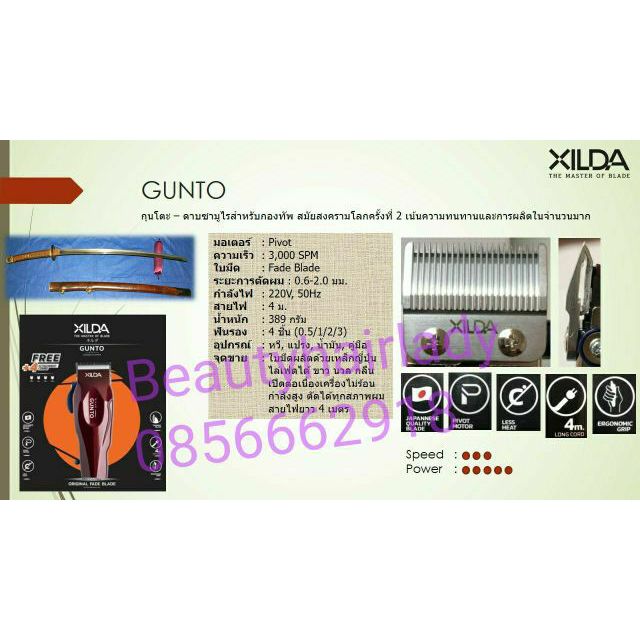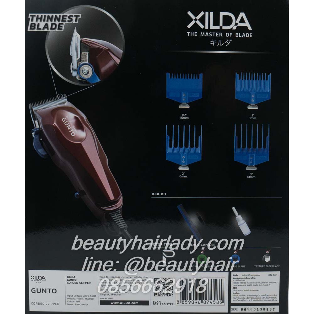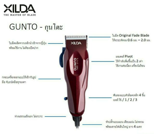 🎭ปัตตาเลี่ยน Xilda Gunto รุ่น (กุนโตะ) เครื่องสีแดง ตัดผม มอเตอร์ Pivot มีระบบป้องกันการสั่น มาตรฐาน โลแลน lolane