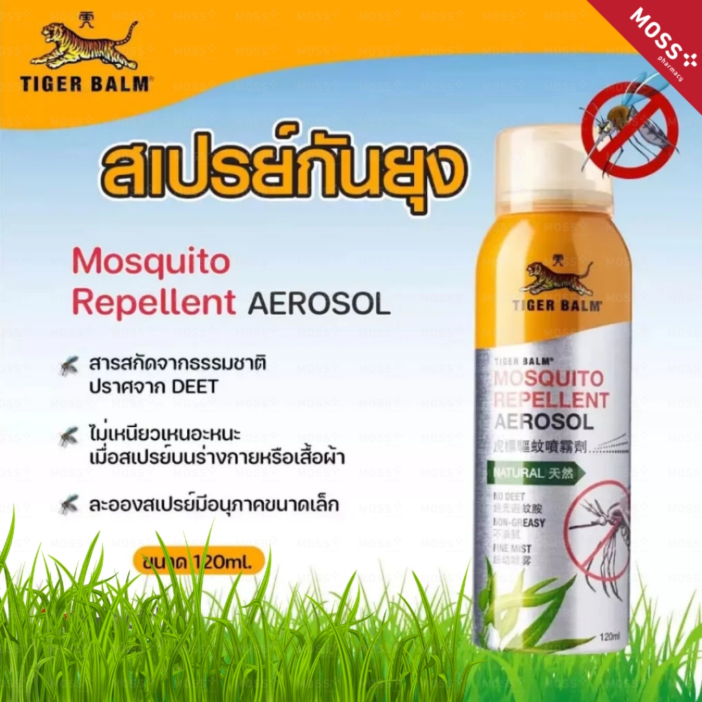 TIGER BALM MOSQUITO REPELLENT AEROSOL NATUAL (ตราเสือ) สเปรย์กันยุง กลิ่นตะไคร้ ไร้สารเคมี ปริมาณ 120 ml.