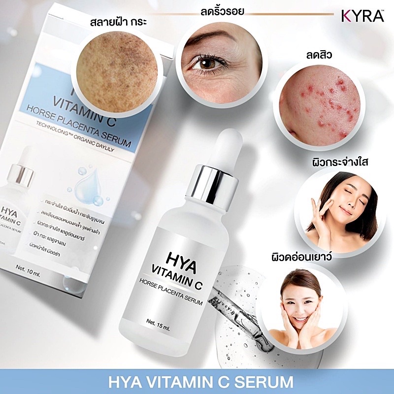 KYRA HYA VITAMIN C SERUM เซรั่มสลายฝ้า ไคร่า ไฮยา วิตามินซี ลดสิว กระ จุดด่างดำ ผิวขาวใส 15ml
