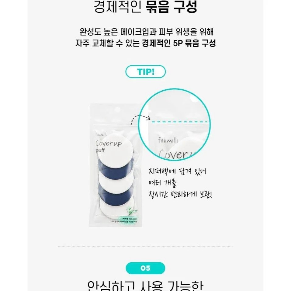 Fillimilli Cover Up Puff (5 ชิ้น) ✨ พัฟแต่ง หน้าสำหรับงานผิว ช่วยเกลี่ยและปกปิดเมคอัพให้ดูเรียบเนียน