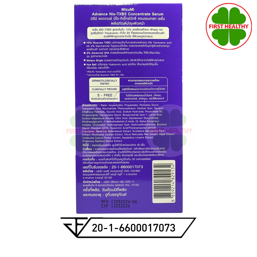 MizuMi Advance Nio-TXB3 Serum " ชนิดกล่อง " เซรั่มฝ้า (1 กล่อง 6 ซอง)