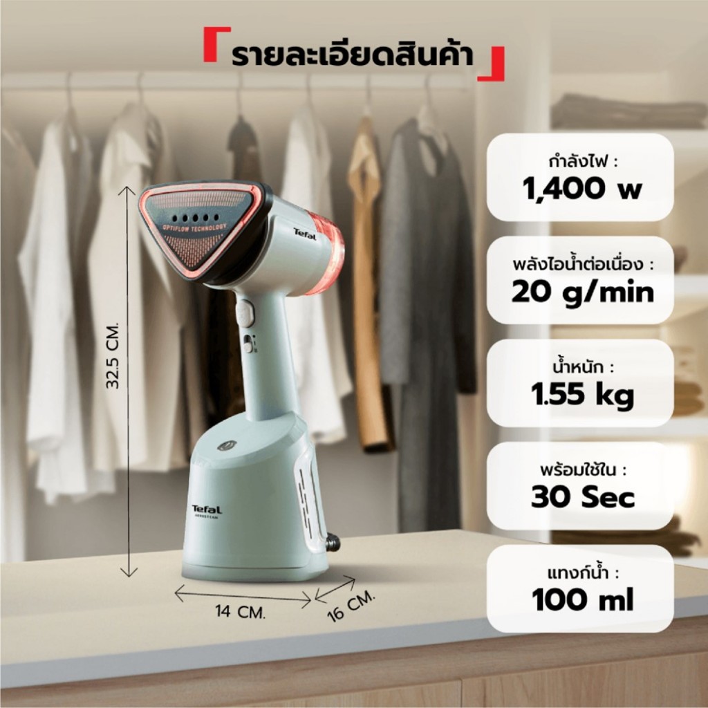 Tefal เครื่องรีดผ้าไอน้ำสุญญากาศ Tefal AeroSteam รุ่น DT9814F0 (ประกันศูนย์2ปี)